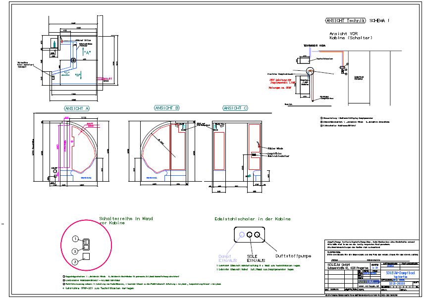 Nach Zahlungseingang beschäftigen wir uns mit Ihrem Projekt zumeist binnen einer Woche (je nach Auslastung) und Sie erhalten dann den Dampfbadplan. Diesen können wir gemeinsam auch mit Ihren Professionisten besprechen und gegebenenfalls auch abändern. Selbstverständlich erhalten Sie auch beim Kauf der Dampfbadtechnik (Dampfgenerator, usw. ) die notwendigen Informationen zu den Vorbereitungs- bzw. Installationsarbeiten.